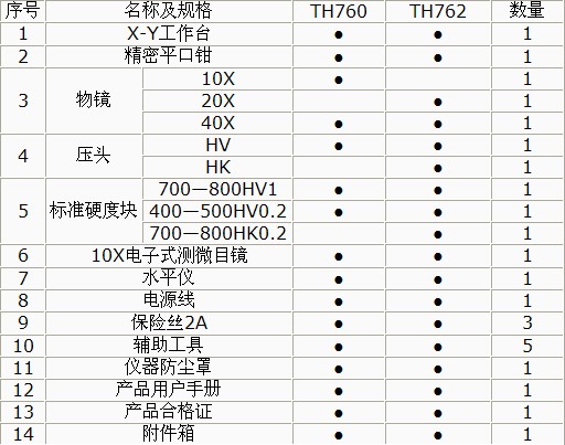 TH760單壓頭系列、TH762雙壓頭系列標(biāo)準(zhǔn)配置明細(xì)表