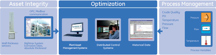 GE的Rightrax LT系統(tǒng)改變了關(guān)鍵的侵蝕/腐蝕檢測數(shù) 據(jù)的測量和管理方式。這一突破性的技術(shù)有助于提高安全性和生產(chǎn)率,同時(shí)降低整體的檢測費(fèi)用。Rightrax LT系統(tǒng)使用永久安裝的傳感器,可以在狹小的空間,以及難以訪問和/或高溫高達(dá)120°C(120.00°C)的地區(qū)進(jìn)行遠(yuǎn)程監(jiān)測。該系統(tǒng)一旦安裝好,即 可通過直接采集壁厚數(shù)據(jù),提供腐蝕數(shù)據(jù)的連續(xù)的實(shí)時(shí)訪問,無需架設(shè)腳手架、除去絕緣或關(guān)閉車間系統(tǒng)。在線監(jiān)測通過提供可用于主動維護(hù)規(guī)劃的數(shù)據(jù),也降低了 勞動密集型的傳統(tǒng)檢測程序。