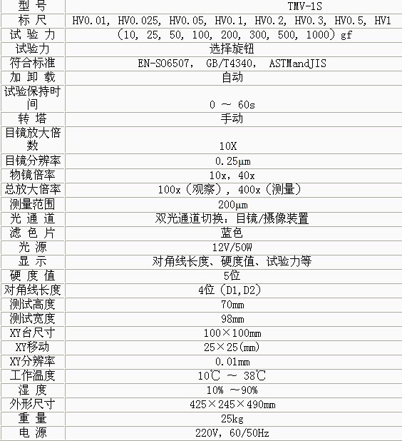 產(chǎn)品概述: TMV-1S顯微維氏硬度計在機械、光學、光源上采用獨特的精密設計使壓痕成像更清晰,測量更精確。適用于測量微小、薄形試件、表面滲鍍處理后的零 件和對瑪瑙、玻璃、陶瓷等脆性材料的顯微和努氏硬度的測定 以及涂層、表面覆層、層壓金屬、熱處理碳化層和淬火硬化層的深度與硬度梯度的測定。是科研機 構(gòu)、工廠及質(zhì)檢部門進行研究和檢測的理想的硬度測試儀器。 功能特點: • 在屏幕上能顯示試驗方法、試驗力、試驗力保荷時間、測量次數(shù)等 • 操作時只要從薄膜鍵盤輸入壓痕對角線長度,,內(nèi)置計算器自動計算出硬度值并顯示在LCD屏上 • 擁有可供連接數(shù)碼相機和CCD攝像頭的螺紋接口,,光源上采用12V、50W鹵素燈熱光源,,像質(zhì)清晰。