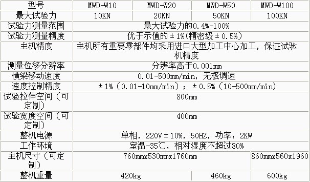 MWD-W系列微機(jī)控制電子式人造板試驗機(jī)技術(shù)參數(shù):
