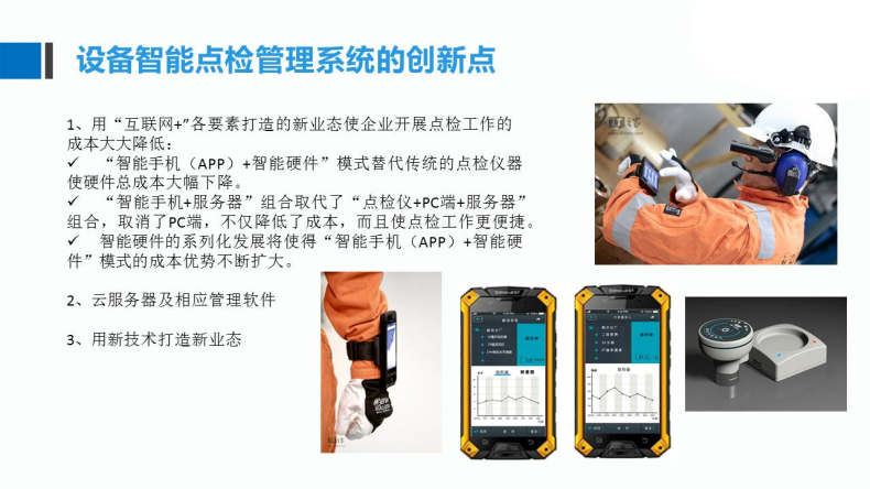 “智能手機(APP)+智能硬件”模式替代傳統(tǒng)的點檢儀器使硬件總成本下降了一半。